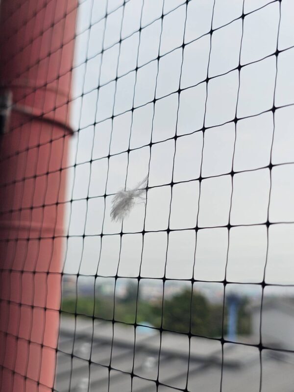 - ขนาดช่องของตาข่ายป้องกันนกมีขนาดเล็ก แต่สามารถทนต่อแรงดึง และความยืดหยุ่นได้ดี เมื่อมีนกบินเข้ามาในตาข่ายทำ ให้ “นกไม่มีโอกาสติดในตาข่าย” ซึ่งจะไม่เป็นอันตรายกับนกแม้แต่น้อย